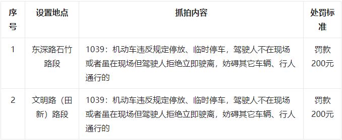 为加强辖区道路交通管理,预防和减少道路交通事故发生,保障道路交通安全、有序、畅通,东莞市公安局交通警察支队桥头大队决定在东深路石竹路段、文明路(田新)路段增设固定电子监控设备。根据《中华人民共和国道路交通安全法》及其配套法规,现将新增电子监控设备安装点位予以公示,并于2024年12月5日起正式投入执法,请广大驾驶人依法安全驾驶。现将具体执法路段公告如下: