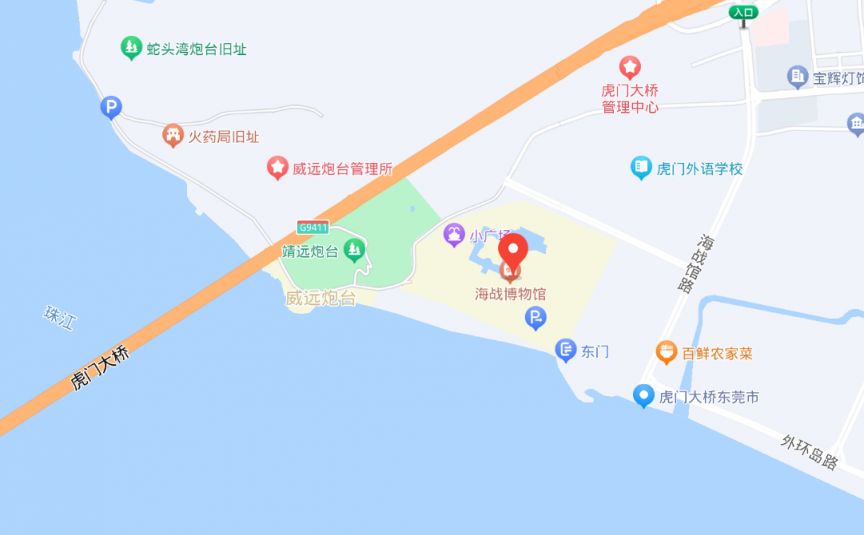 2. 从深圳市出发: - 沿广深高速(G4W)行驶,在虎门出口下高速,然后沿S325省道行驶,经过虎门大桥,到达虎门镇,再按照路标指示前往海战博物馆。