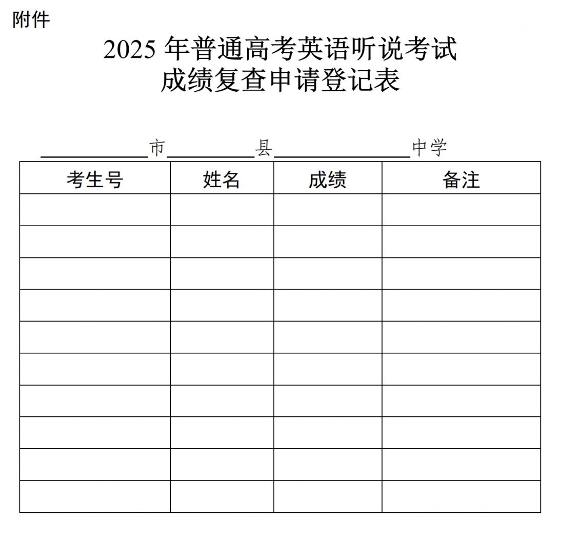 广东2025年普通高考英语听说考试成绩复查申请登记表下载