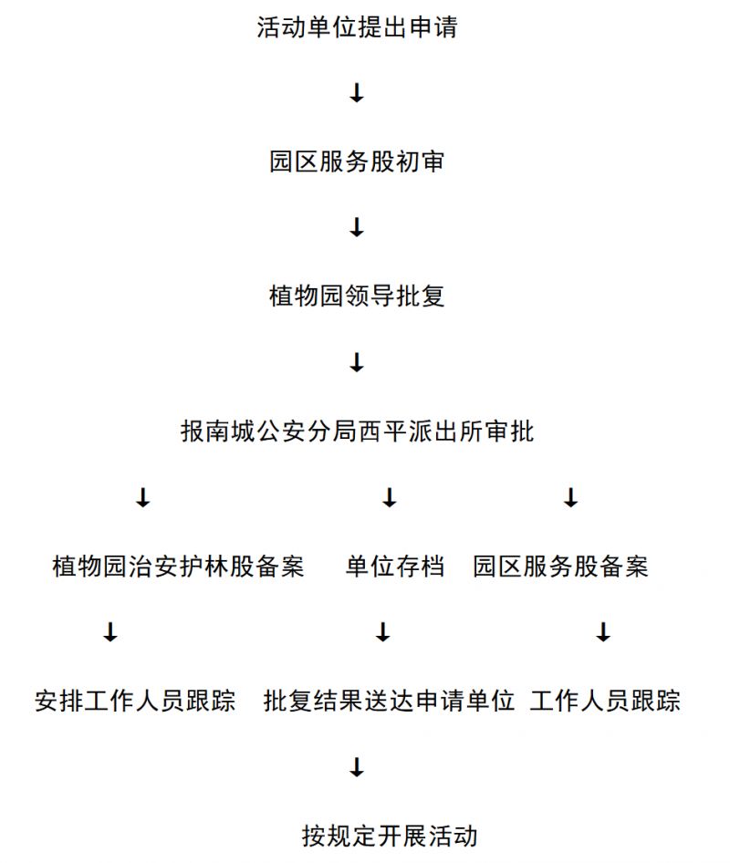 (3)植物园领导审核、批复后,由园区服务股通知治安护林股及所在地派出所。