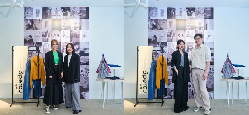apercu设计师陈品忻与魏翠萱(图左),以及apercu联名设计师董亭言和陈佳睿(图右),皆携手共同现身在中。 鼓励体验自由趣味穿搭创意,回馈优惠折扣与上乘优质满额赠