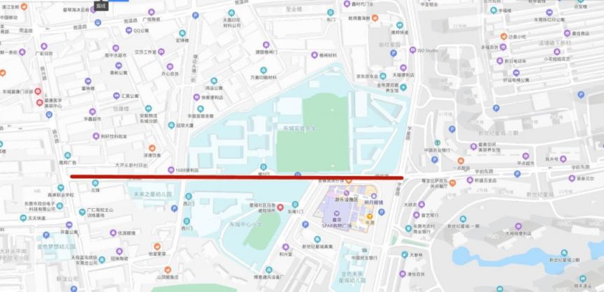 管制路段三:东莞市东城实验中学,涉及路段区域有:学前路。