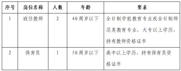 二、招聘条件 1. 遵守国家法律法规,热爱教育事业,具有良好的职业道德和团队合作精神。 2. 全日制学前教育专业大专及以上学历,持有幼儿园教师资格证。 3. 具备一定的教学能力和班级管理能力,有相关工作经验者优先。 4. 身体健康,能适应幼儿园工作环境。